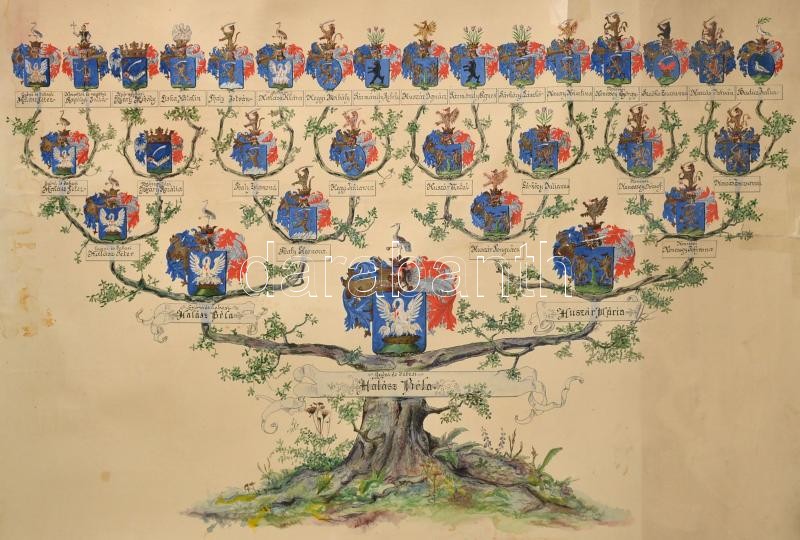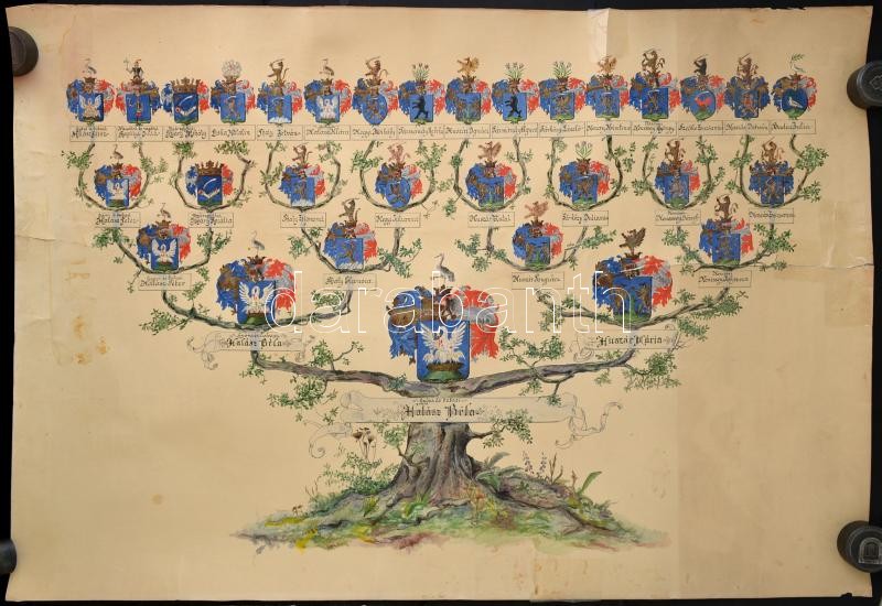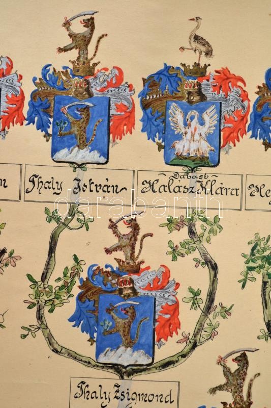 https://www.darabanth.com/en/30-Major-auction/30.1/Other-collectibles/Historical-documents-manuscripts~12611/cca-1880-A-gyoni-es-dabasi-Halasz-csalad-kezzel-festett-csaladfaja-Feltekert-kartonon-ragas~II1860570