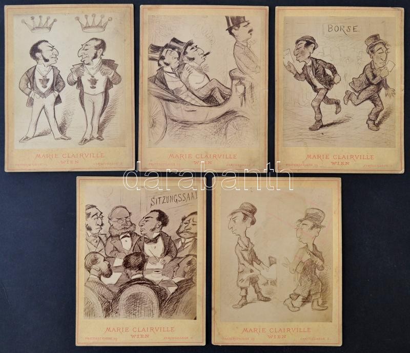 cca 1880-1900 Bécs, Gúnyrajzok fotómásolatai, Marie Clairville műterméből, 5 db, 16×12 cm / caricatures of Jews, 5 photos
