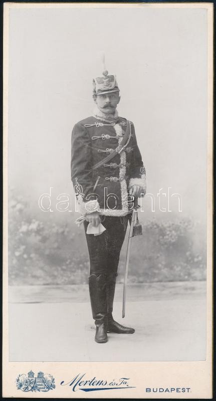 cca 1900 Huszár díszruhában, keményhátú fotó Mertens és Fia budapesti ...