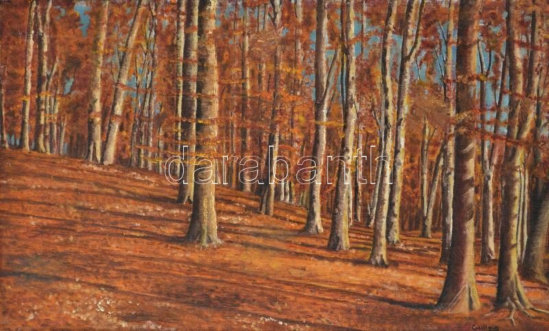 Csillag József (1894-1977): Őszi erdő. Olaj, vászon, jelzett, keretben, 37×60 cm