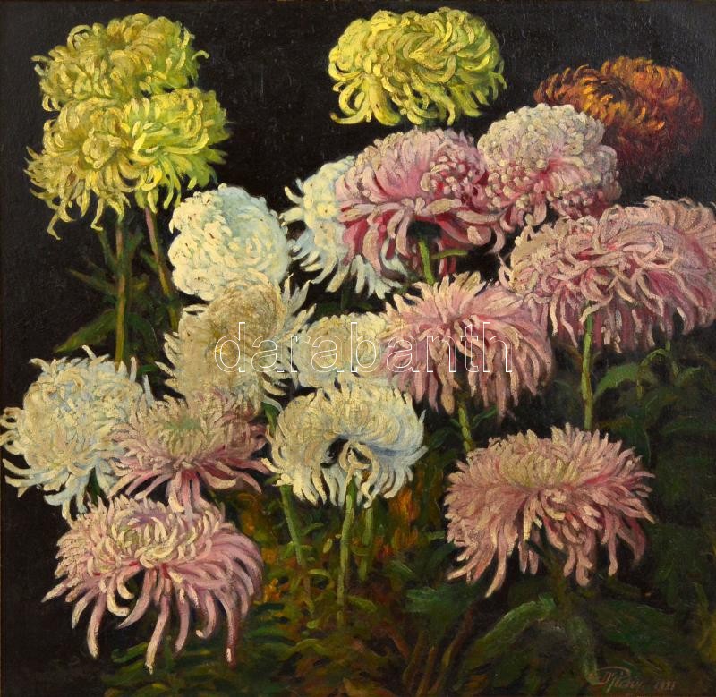 Dr Pécsi János (1885-?): Krizantémok. Olaj, karton, jelzett, keretben,...
