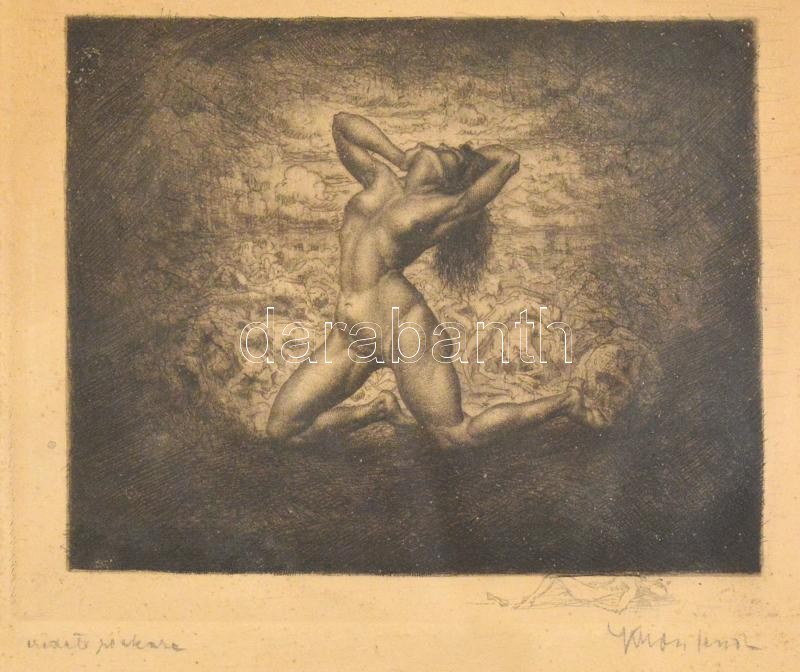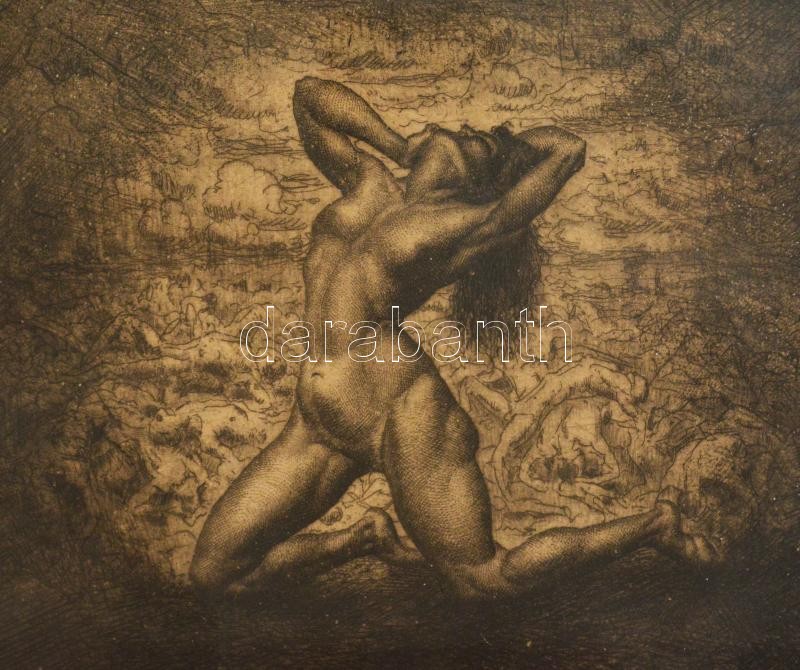 Kron Jenő (1882-1974): Extázis. Rézkarc, papír, jelzett, üvegezett ker...