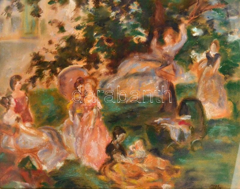 Páldy Zoltán (1884-1939): Hintázók. Pasztell, papír, jelzett, üvegezet...
