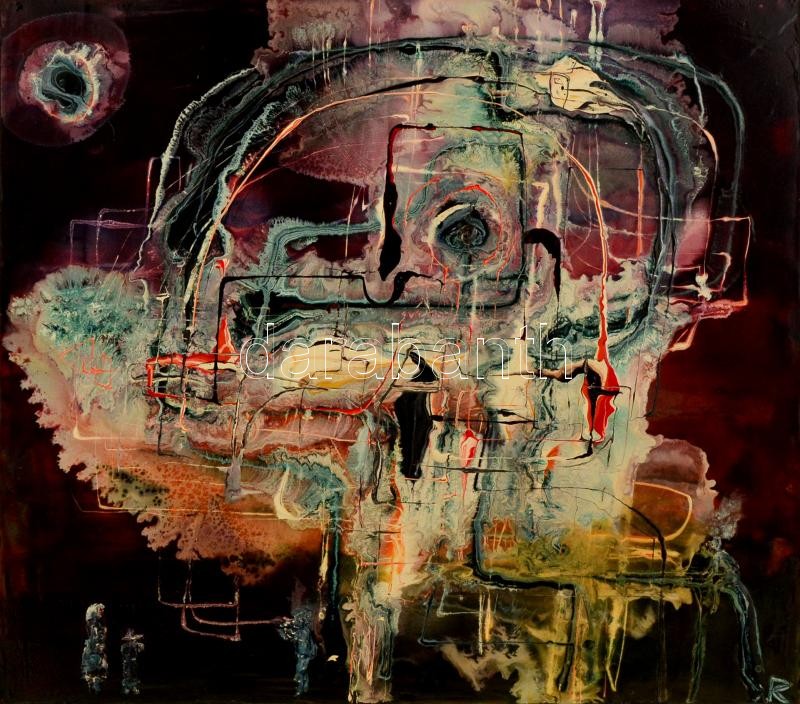 Rác András (1926-2013): Gomolygó konstrukció. Hidegzománc, farost, jel...