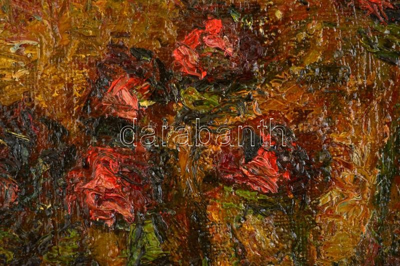 Román György (1903-1981): Csendélet. Olaj, farost, jelzett, keretben, 60×50 cm