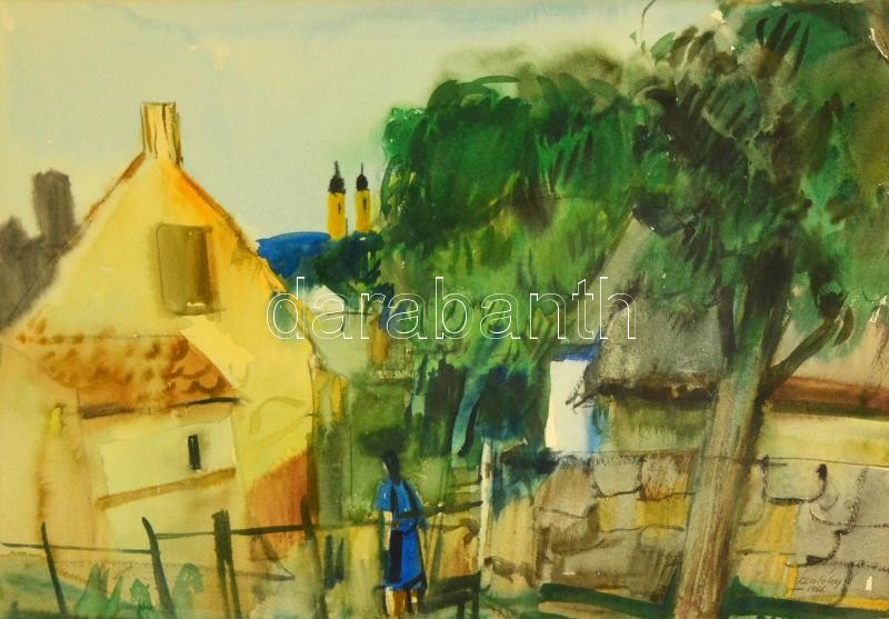 Szalóky Sándor (1921-1978): Kertek alatt. Akvarell, papír, jelzett, üv...