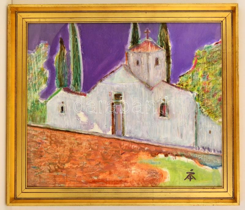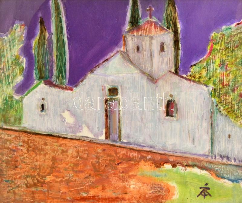 Tóth-Vissó Árpád (1921-2001): Kolostor Kréta szigetén. Olaj, farost, j...