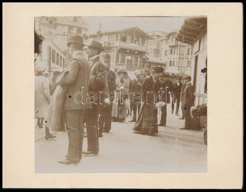 cca 1900 Ótátrafüred, villamosmegálló, fotó, kartonra ragasztva, 8,5×9 cm / cca 1900 Starý Smokovec, tram stop, photograph on cardboard, 8,5×9 cm