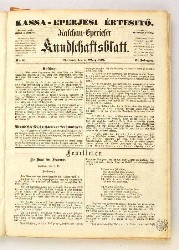 https://www.darabanth.com/en/30-Major-auction/30.1/Other-collectibles/Printed-Materials~12197/1859-Kasa-Eperjesi-Ertesito-Kaschau-Eperieser-Rundschaftsblatt-teljes-evfolyama-konyvbe-kotv~II1865420