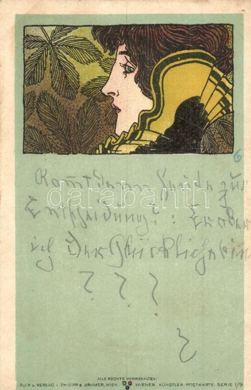 Art Nouveau lady. Philipp & Kramer Wiener Künstler-Postkarte Serei I/9. litho (fa)