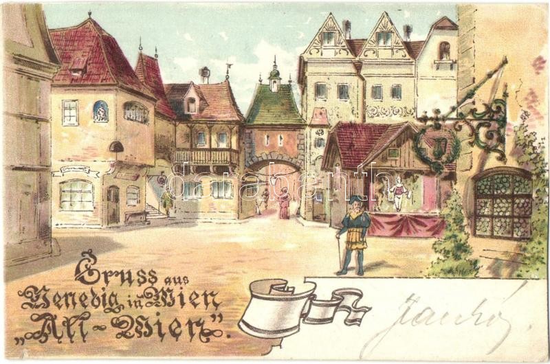 1898 Vienna, Wien; Gruss aus Venedig in Alt-Wien. So. Stpl, litho (EK)
