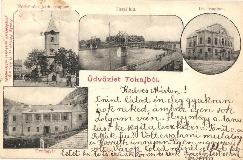 1902 Tokaj, Gyufagyár, Izraelita templom, zsinagóga, Fő téri római kat...
