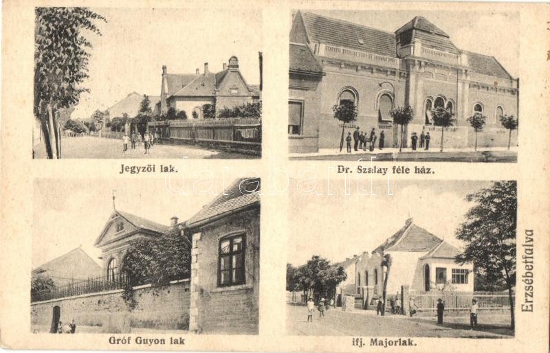 1910 Budapest XX. Pestszenterzsébet, Pesterzsébet, Erzsébetfalva; Jegyzői lak, Ifj. Majorlak, Dr. Szalay féle ház, Gróf Guyon lak (EK)