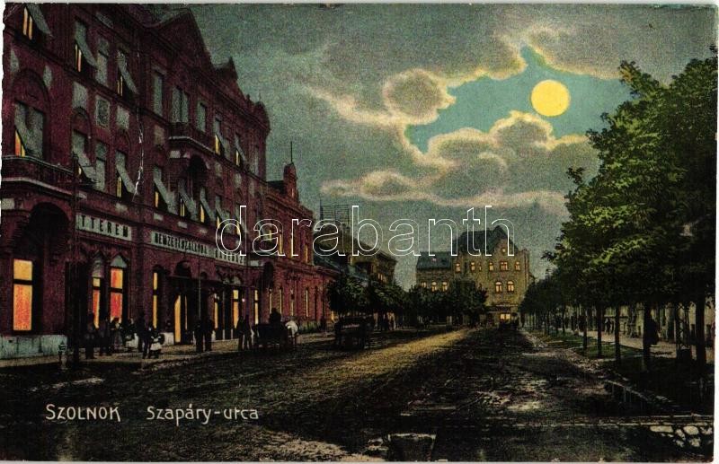 1915 Szolnok, Szapáry utca este, Nemzeti szálloda, étterem és kávéház (Rb)