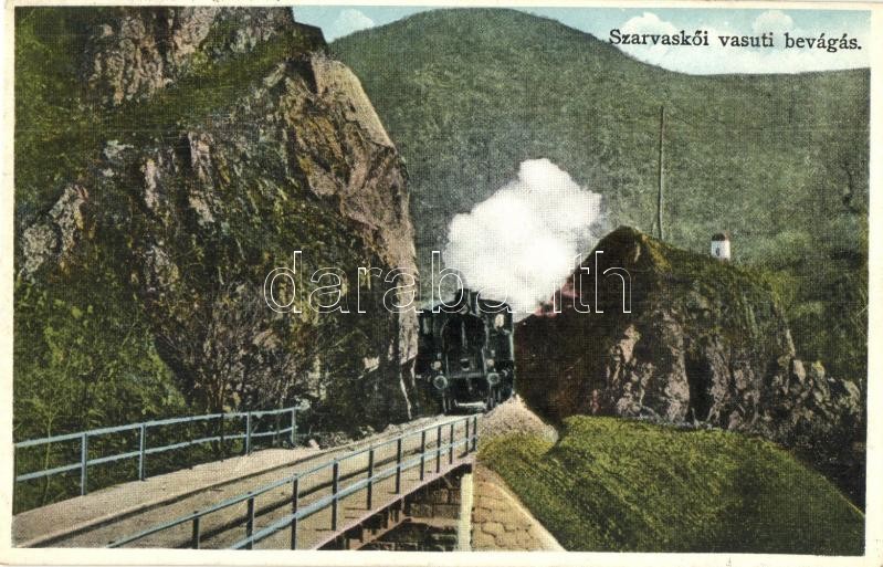 1939 Szarvaskő, Vasúti bevágás gőzmozdonnyal + Postai Ügyn. pecsét