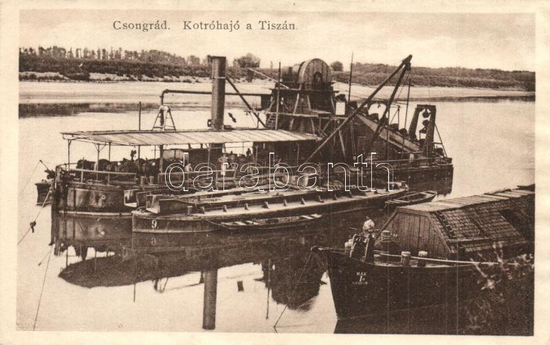 Csongrád, Kotróhajó a Tiszán. Bozó és Justin kiadása (EK)