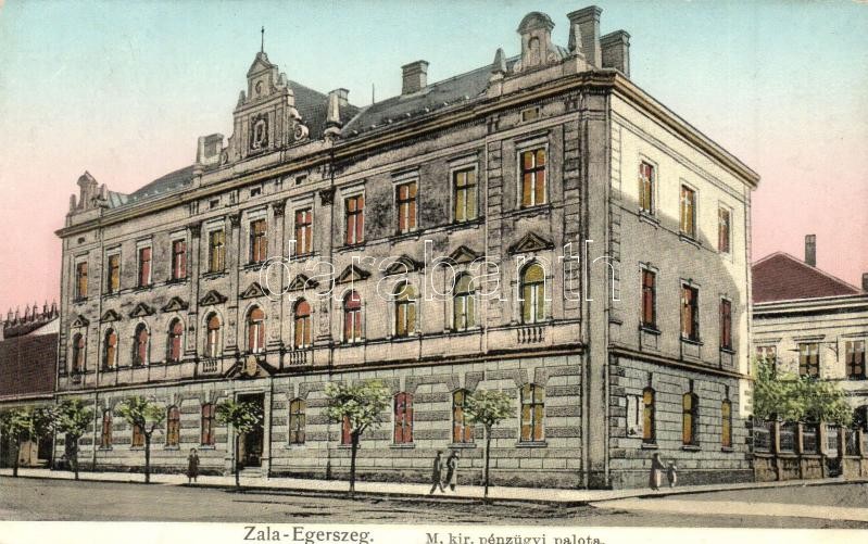 Zalaegerszeg, Pénzügyi palota. Arany díszítéssel, kiadja Fülöp János