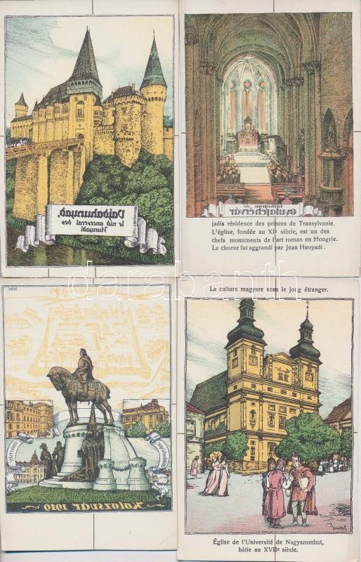 Description: 13 db RÉGI magyar irredenta művészlap színes próbanyomata, köztük fordított nyomatok / 13 pre-1945 proofs of Hungarian irredenta art postcards, with some reverse proofs. RRR!