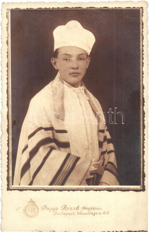 1933 Zsidó gyermek tálitban Tórával (Bar-micvó). Weisz Lajos elnök le... https://www.darabanth.com/en/30-Major-auction/30.1/Postcards/Judaica~12584/1933-Zsido-gyermek-talitban-Toraval-Bar-micvo-Weisz-Lajos-elnok-levele-Hirschler-Andor-ale~II1853182