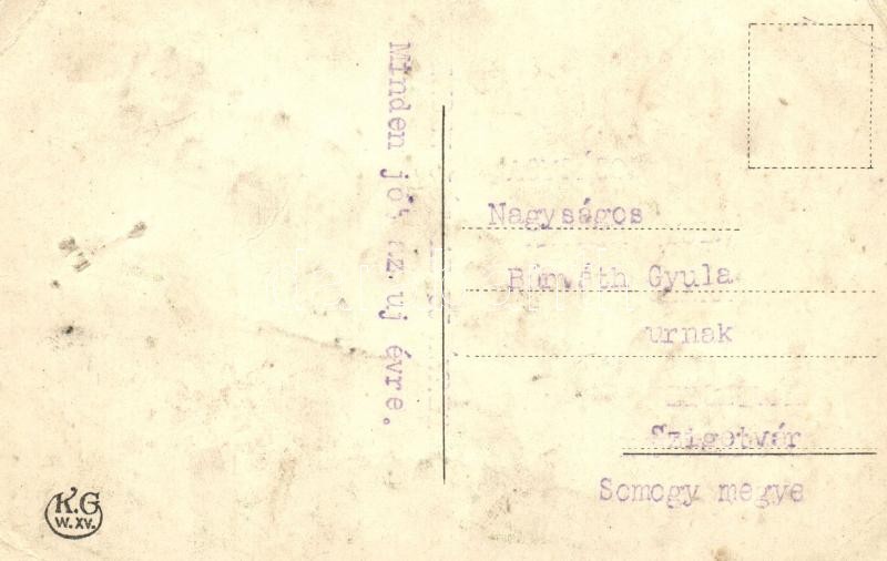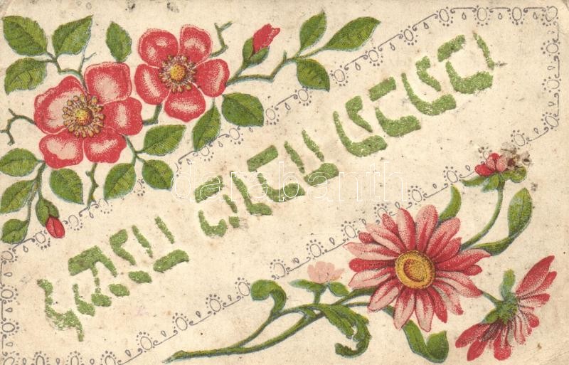 Héber nyelvű virágos újévi üdvözlőlap / Hebrew New Year greeting card with flowers, Judaica. K.G. X. XV. litho (EK)