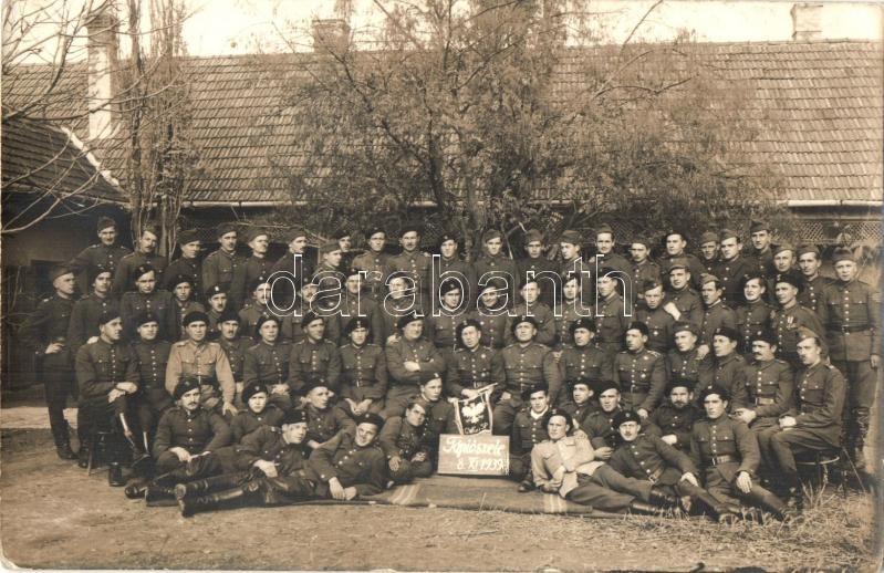1939 Tápiószele, lengyel menekült katonák csoportképe C. W. Cz. i. Sp. zászlóval / WWII Polish refugee soldiers. Szélessy Imre photo