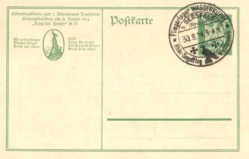 Description: 1924 Flieger-Gedenktag. Gedenkpostkarte zum 2. Allgemeinen Deutschen Fliegergedenktag / Memorial postcard for the 2nd General German Aviator Commemoration Day. 5Ga. + "Fliegerlager Wasserkluppe b. Gersfeld"