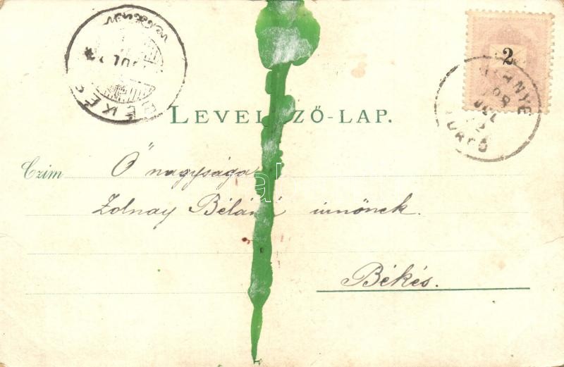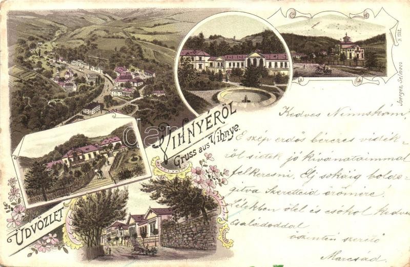 1898 Vihnye, Kúpele Vyhne; fürdők és villák / spas and villas. Joerges N. 1202. Art Nouveau, floral, litho (ragasztónyom / gluemark)