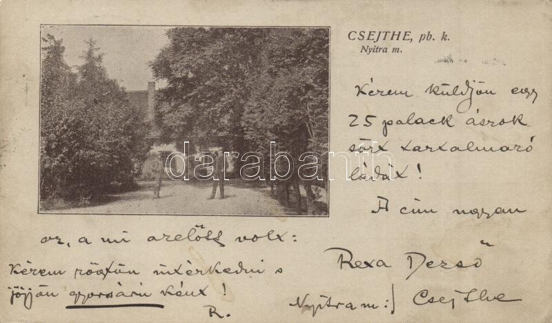 Description: 1901 Csejte, Cachtice; Drughetovska Kúria. Rexa Dezső irodalomtörténész, levéltáros, helytörténész, nyelvész, író levele (25 palack ászok sört kér) / Villa Drughetovska. Letter of Dezső Rexa, a Hungarian historian, linguist and writer (he asks for 25 bottles of beer)