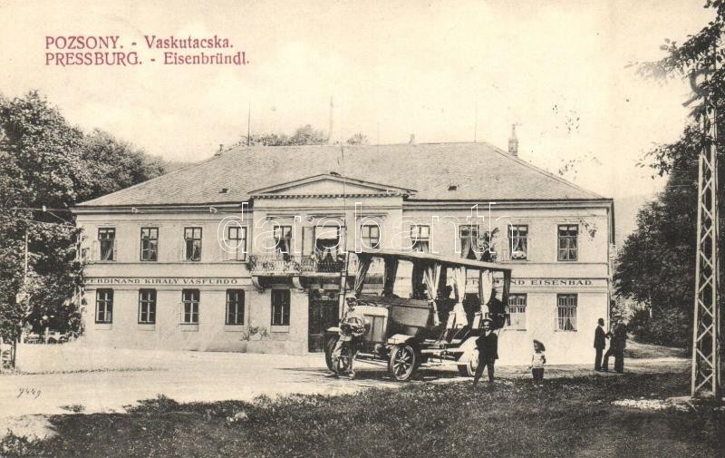 1909 Pozsony, Pressburg, Bratislava; Vaskutacska, Ferdinánd király vas... https://www.darabanth.com/en/30-Major-auction/30.1/Postcards/Slovakia~12507/1909-Pozsony-Pressburg-Bratislava-Vaskutacska-Ferdinand-kiraly-vasfurdo-korai-trolibusz-E~II1857050