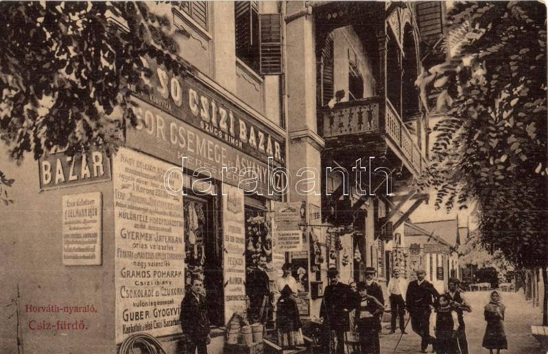 1910 Csízfürdő, Cíz Kúpele; Horváth nyaraló, kölcsönkönyvtár, Szűcs Simon Első Csízi Bazára és saját kiadása / villa, bazaar shop, library
