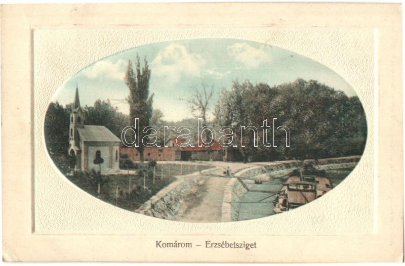 1911 Komárom, Komárnó; Erzsébet sziget, kápolna, uszály / Alzbetínsky ...
