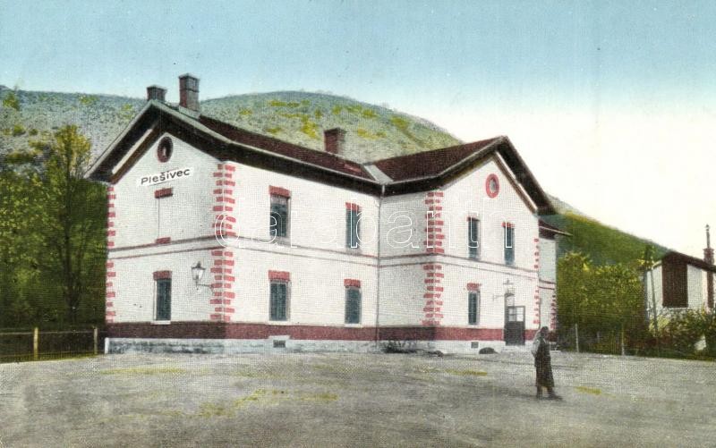 1928 Pelsőc, Pelsücz, Plesivec; vasútállomás / Nadrazie / Bahnhof / railway station