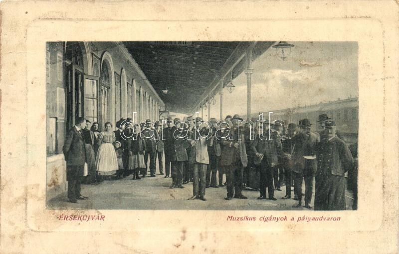 Érsekújvár, Nové Zamky; Muzsikus cigányok a pályaudvaron, vasútállomás...