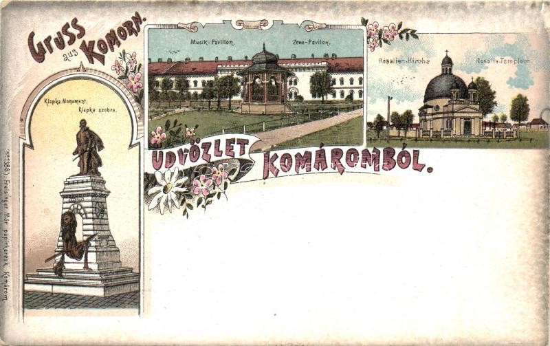 Komárom, Komárno; Klapka György szobor, Zenepavilon, Szent Rozália tem... https://www.darabanth.com/en/30-Major-auction/30.1/Postcards/Slovakia~12507/Komarom-Komarno-Klapka-Gyorgy-szobor-Zenepavilon-Szent-Rozalia-templom-Freisinger-Mor-kiad~II1857048