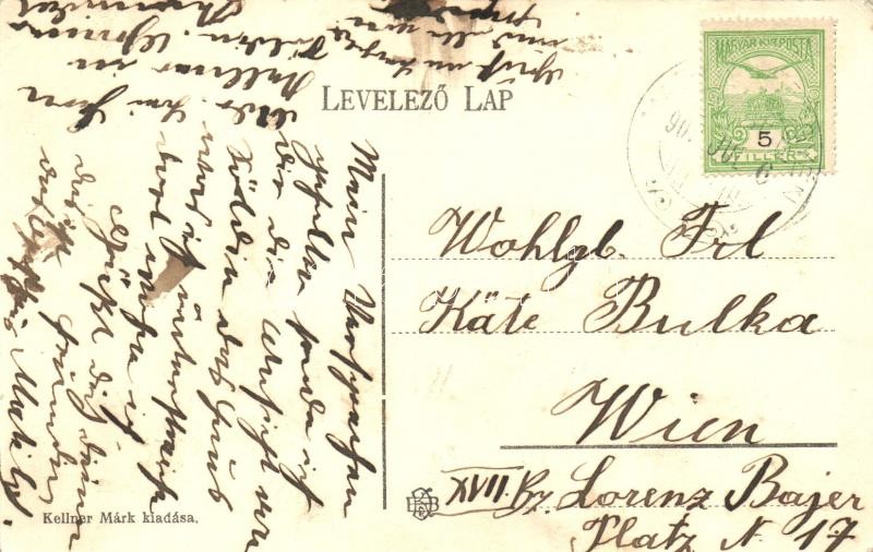 Description: Németszőgyén, Németszőlgyén, Szőgyén, Nemecky Seldín; Katolikus templom, vendéglő bor, sör és pálinka méréssel, Kellner Márkusz vegyeskereskedése és saját kiadása / church, restaurant, shop