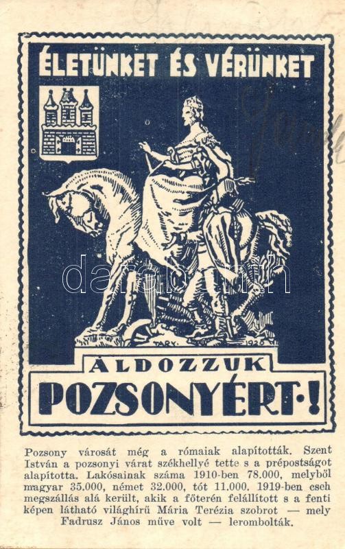Pozsony, Pressburg, Bratislava; Életünket és vérünket áldozzuk Pozsony... https://www.darabanth.com/en/30-Major-auction/30.1/Postcards/Slovakia~12507/Pozsony-Pressburg-Bratislava-Eletunket-es-verunket-aldozzuk-Pozsonyert-irredenta-kepesla~II1864774