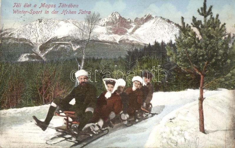 Tátra, Tatry; téli élet, öten kormányozható bobszán menetben / five-ma...