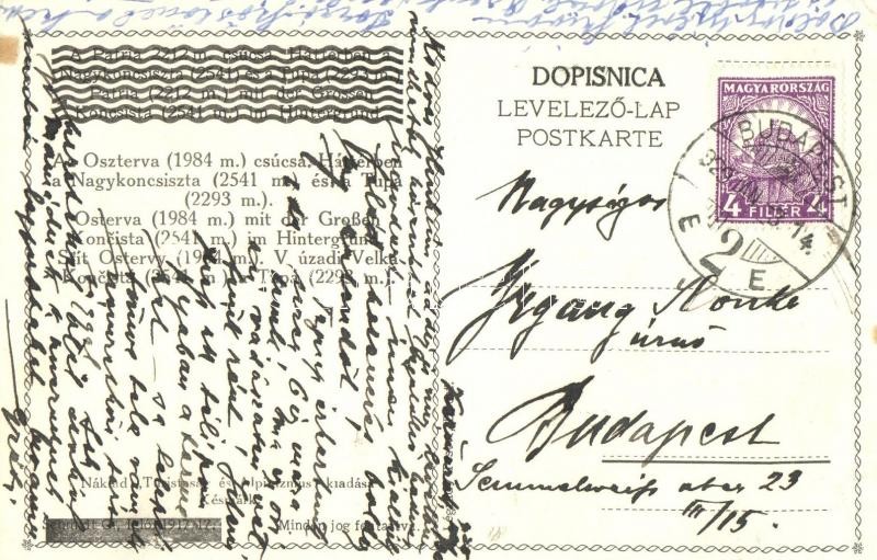 Tátra, Vysoké Tatry; Oszterva csúcsa, háttérben a Nagykoncsiszta és a ... https://www.darabanth.com/en/30-Major-auction/30.1/Postcards/Slovakia~12507/Tatra-Vysoke-Tatry-Oszterva-csucsa-hatterben-a-Nagykoncsiszta-es-a-Tupa-sielo-TuristasC3~II1864508