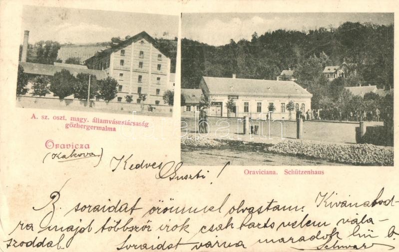 Description: 1901 Oravica, Oravita; Az osztrák-magyar államvasúttársaság gőzhengermalma, lövölde / Oraviciana. Schützenhaus / mill of the Imperial Royal Privileged Austrian State Railway Company, shooting hall (EK)