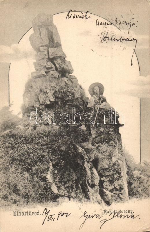 1902 Biharfüred, Stina de Vale; Rakott torony hölggyel / rock with hik...