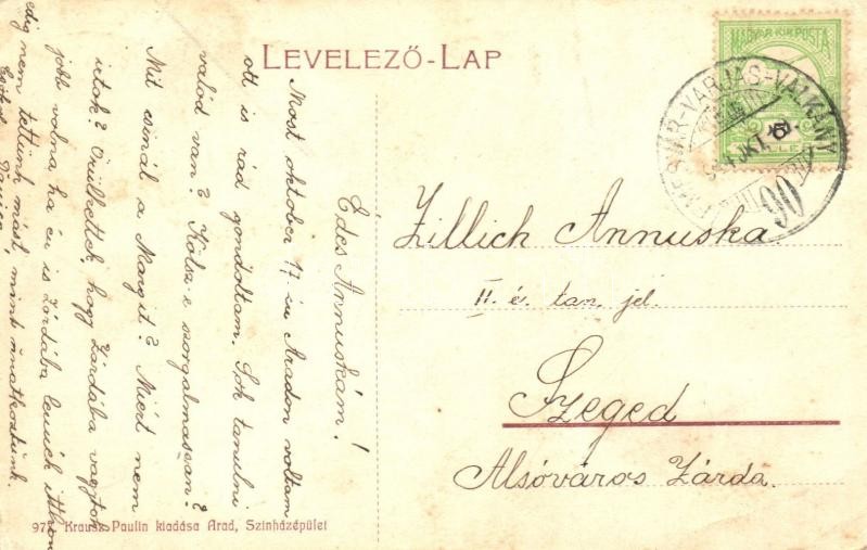 https://www.darabanth.com/en/30-Major-auction/30.1/Postcards/Transylvania~12506/1904-Arad-Konviktus-lovaskocsik-Krausz-Paulin-kiadasa-977-boarding-school-horse-carts-fa~II1858384