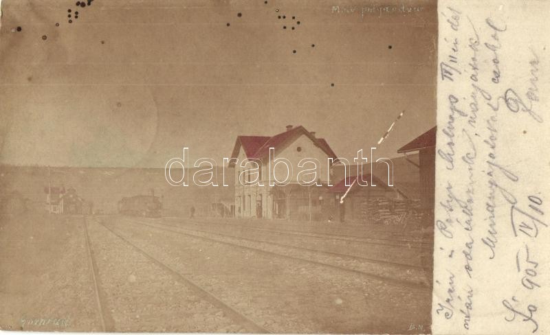 1905 Sóvárad, Sarateni; MÁV vasútállomás és gőzmozdony / Gara / Bahnhof / railway station with locomotive. photo