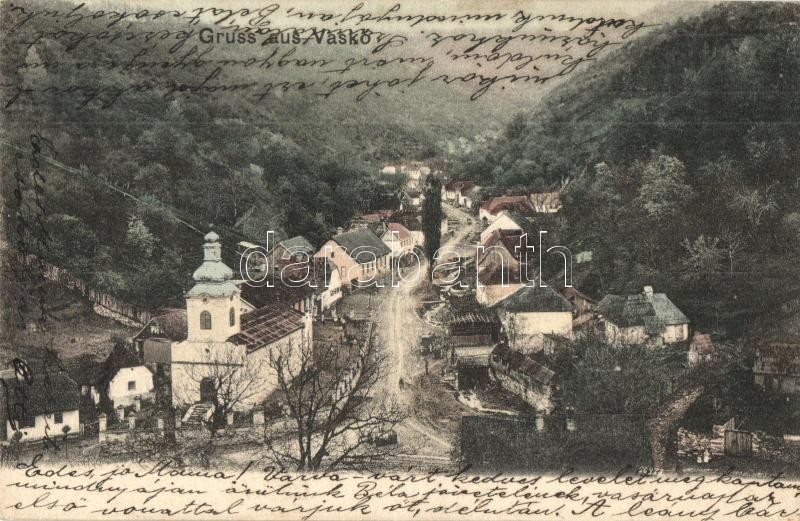 1905 Vaskő, Eisenstein, Ocna de Fier; látkép templommal / general view with church