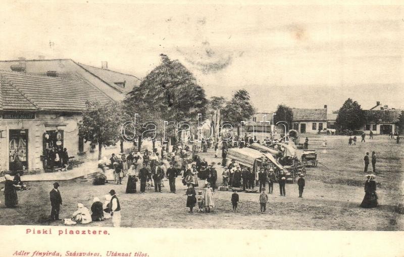 https://www.darabanth.com/en/30-Major-auction/30.1/Postcards/Transylvania~12506/1908-Piski-Simeria-Piac-ter-arusokkal-Muller-Jozsef-uzlete-Adler-fenyirda-market-with-ve~II1863058