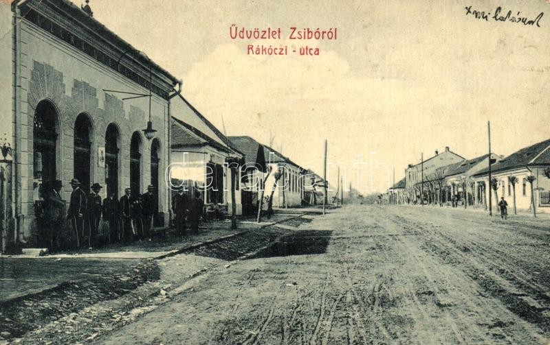 1910 Zsibó, Jibou; Rákóczi utca, posta (?). W.L. Bp. 6068. Czenk György utódai kiadása / street, post office (?) (EK)