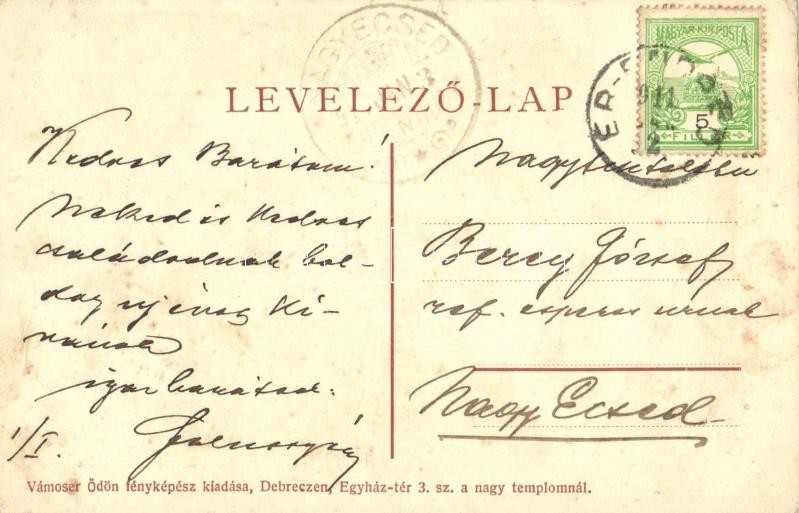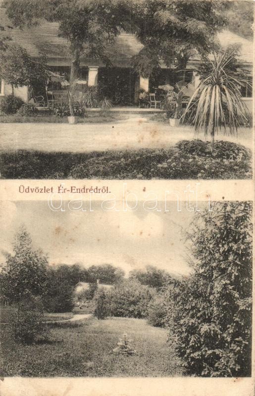 Description: 1911 Érendréd, Ér-Endréd, Andrid; Falussy Árpád kúriája és saját kezű levele Berey József református esperes úrnak címezve. Vámoser Ödön fényképész kiadása / villa with garden. The owner's own handwritten letter (EK)