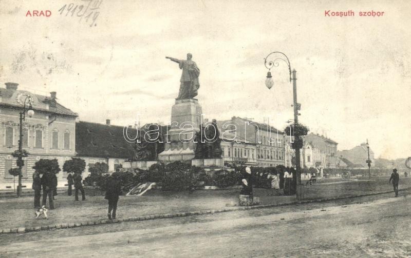 1912 Arad, Kossuth szobor megkoszorúzva / wreathed statue