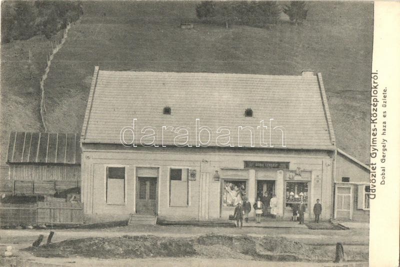 https://www.darabanth.com/en/30-Major-auction/30.1/Postcards/Transylvania~12506/1916-Gyimeskozeplok-Lunca-de-Jos-Dobal-Gergely-haza-es-uzlete-house-and-shop~II1852769