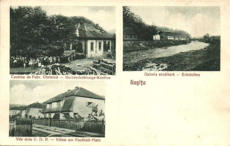 Description: 1928 Resica, Resita; Cantina de Fabr. Chemica, Vile dela U.D.R., Galeria ereditara / Villen am Football-Platz, Holzverkohlungs-Kantine, Erbstollen / villas, canteens of the chemical factory