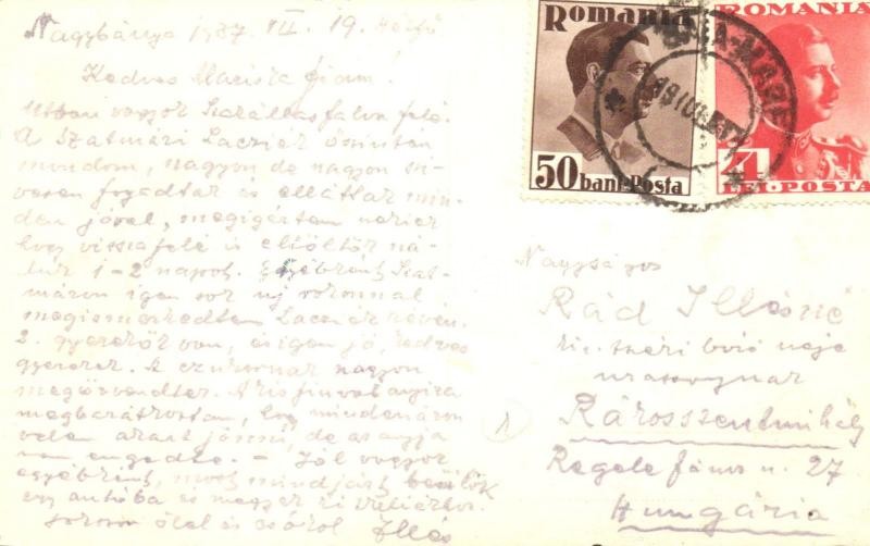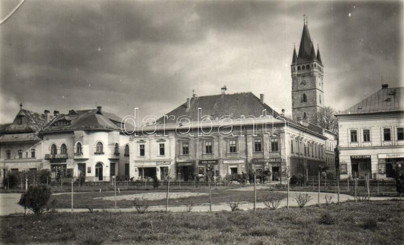1937 Nagybánya, Baia Mare; Fő tér, Frankovits, Weisz & Corp., Bodega Bölönyi, Maday, Roza Fichter, F. Magyary, Magazie de Mode üzlete, bank / main square with shops and bank. photo